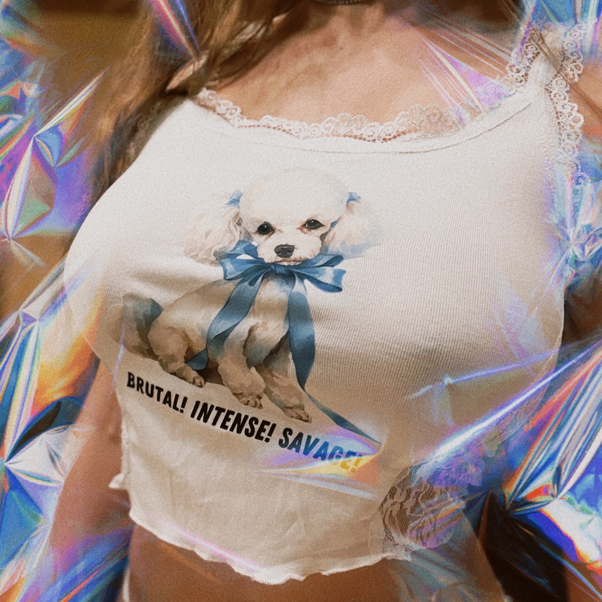white stretchy sleeveless tank with a see-through lace back. size medium. one of one design.