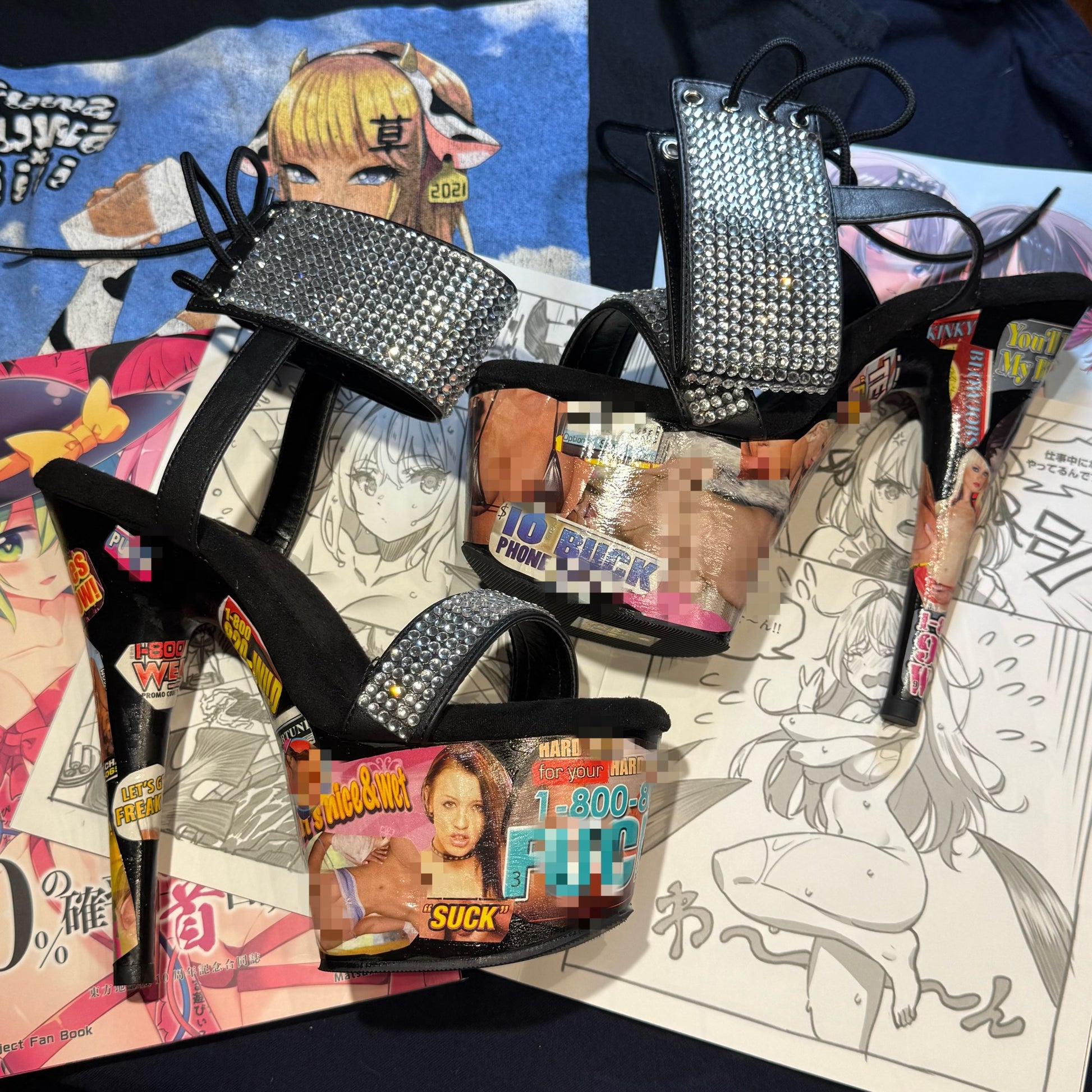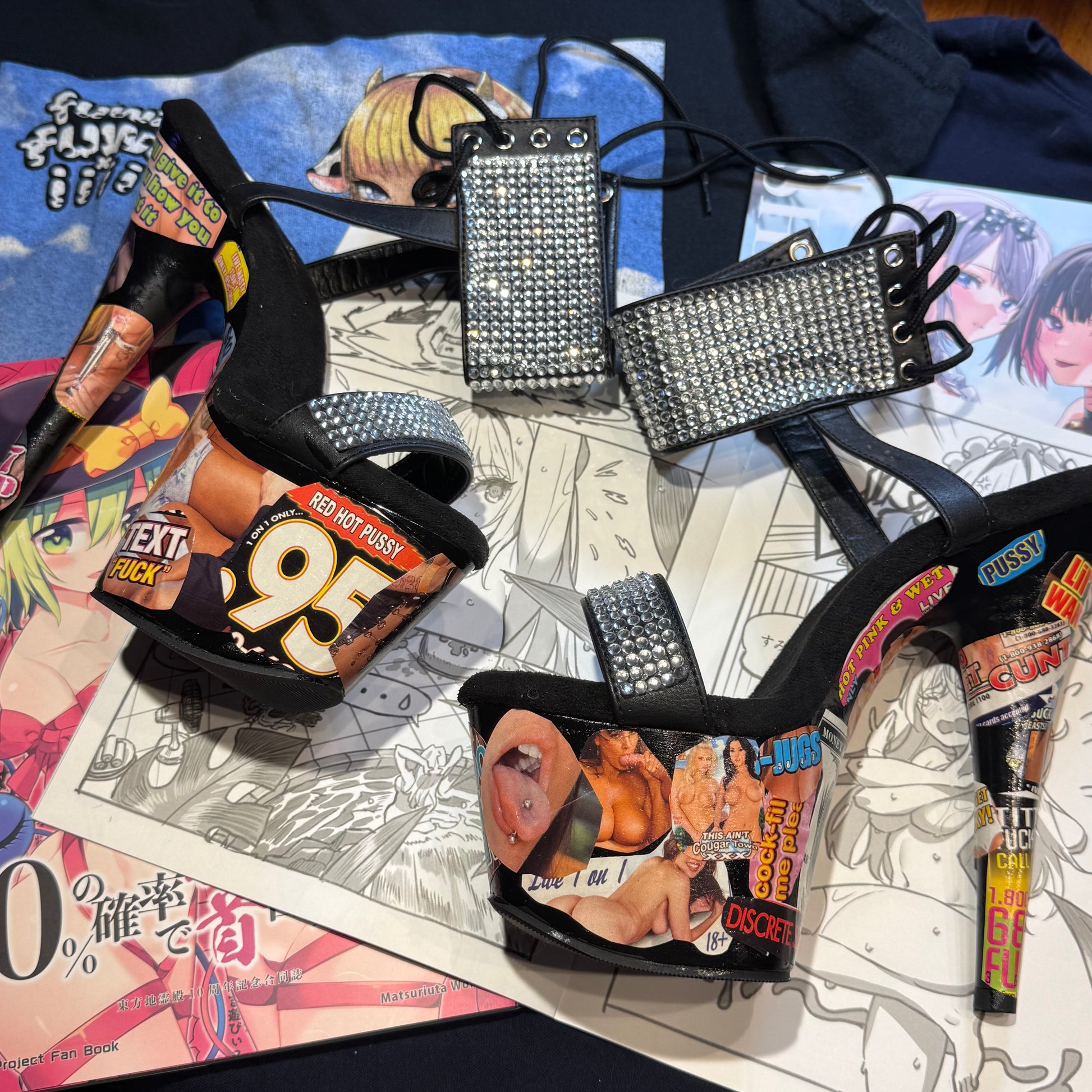 platform heels made from a real, vintage 18+ adult magazine. very naughty. very inappropriate. very adult. and we love it.